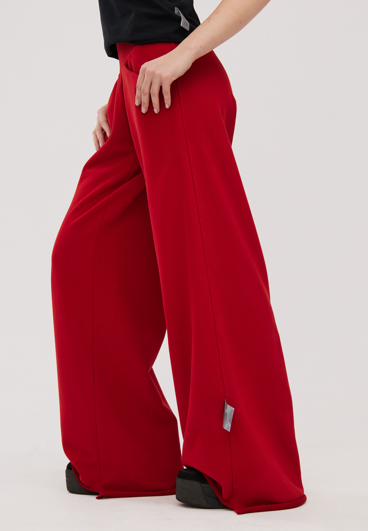 • Необработанные края брюк ( максимальная длина на рост 180 см ). Укорачивайте под свой рост не подшивая. Но надо закрепить швы. Необработанный край придаст красоту и легкость изделию.